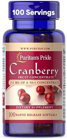 Puritan's Pride Premium Cranberry Fruit Concentrate 252mg (12,600mg Equivalent) with Vitamins C and E, Dietary Supplement for Immune System Support, 100 Rapid Release Softgels