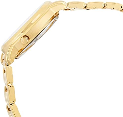 Maravillosamente clásico con un toque de color dorado bien colocado, el reloj analógico de acero inoxidable con esfera blanca chapado en oro para hombre de Seiko es una deliciosa pieza de acero inoxidable chapado en oro. Este majestuoso reloj comienza con una caja de acero inoxidable chapada en oro de 38 mm con un bisel fijo chapado en oro, un fondo de caja de exhibición y una corona texturizada en la posición del reloj de las 4 en punto. Estos elementos rodean una esfera blanca nítida, que está protegida por un cristal duro resistente a los arañazos y presenta índices de hora romanos en tonos dorados y negros, así como manecillas luminosas accionadas por un movimiento automático de cuerda automática. La esfera también cuenta con una ventana de visualización de la fecha en la posición del reloj de las 3 en punto. Un brazalete de eslabones de acero inoxidable chapado en oro sujeta este reloj a la muñeca, mientras que un cierre desplegable con botón pulsador garantiza su colocación segura. Por último, este reloj cuenta con una resistencia al agua de hasta 99 pies (30 metros). Un reloj sofisticado con un acabado increíble, no dejes que este reloj se te escape de las manos.