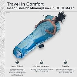 - Prepare for a restful night under the stars with our Insect Shield MummyLiner COOLMAX, meticulously designed to keep pesky insects at bay while you sleep soundly. Treated with long-lasting insect repellent, this MummyLiner effectively wards off mosquitoes, ticks, and other bothersome bugs, ensuring uninterrupted sleep during your camping trip. With Permethrin treatment that lasts for up to 70 washes, you can trust in its reliability trip after trip. Crafted from COOLMAX EcoMade fabric, this liner not only repels insects but also wicks away moisture and dries quickly, keeping you cool and comfortable throughout the night. Ready to enhance your camping experience? Invest in the Insect Shield MummyLiner COOLMAX today and enjoy peaceful nights under the stars without the annoyance of bugs. Whether you're backpacking through the wilderness or camping in your favorite spot, this MummyLiner ensures you can rest easy, free from insect disturbances. Say goodbye to bug bites and hello to uninterrupted camping bliss with our Insect Shield MummyLiner COOLMAX.
