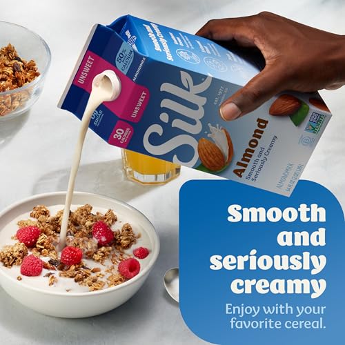 Regálate esta suave y cremosa leche de almendras Silk Unsweet. Disfruta de todo su sabor con 0 gramos de azúcar por porción*. Elaborada con tres tipos de almendras cultivadas por la madre naturaleza y recolectadas en su punto máximo de madurez, esta leche de almendras tiene una mezcla perfecta de calidad y sabor. Además, su sabor suave la convierte en una leche de origen vegetal de sabor extraordinario que puedes usar durante todo el día. Sabe muy bien en batidos y cereales saludables. Cada porción de esta leche no láctea contiene vitamina D, que ayuda a fortalecer los huesos, y un 50% más de calcio que la leche láctea**. La leche de almendras Silk está totalmente libre de lácteos, soja, lactosa, gluten, caseína, huevo y glutamato monosódico. ¿Buscas artículos para cocinar o hornear sin lactosa? Confíe en Silk, el pionero original de las plantas. No es solo leche de almendras, es Milk of the Land***. Lea más sobre nuestra historia en nuestros empaques. Disfrute de todos los productos Silk, incluidas las variedades de leche vegana, crema no láctea y yogur sin lácteos. *Consulta la información nutricional para conocer el contenido de azúcar y calorías. **Leche de almendras y seda: 470 mg de calcio por taza; leche de vaca reducida en grasa: 309 mg de calcio por taza. Central de datos alimentarios del USDA, 2022. ***De plantas, no de vacas. No es nutricionalmente equivalente a la leche de vaca.