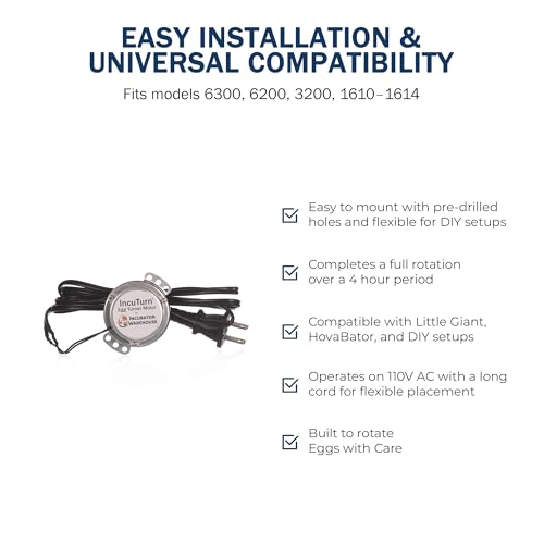 - 𝐄𝐀𝐒𝐘 𝐈𝐍𝐒𝐓𝐀𝐋𝐋𝐀𝐓𝐈𝐎𝐍: The replacement motor is designed for straightforward installation, allowing users to quickly replace their old or malfunctioning motor without requiring specialized tools or technical expertise. This ease of installation saves time and effort, enabling a faster return to the egg incubation process.