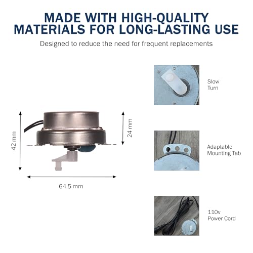 - 𝐕𝐄𝐑𝐒𝐀𝐓𝐈𝐋𝐄 𝐂𝐎𝐌𝐏𝐀𝐓𝐈𝐁𝐈𝐋𝐈𝐓𝐘: This slow rotating motor is specifically designed to be compatible with Little Giant and HovaBator incubators, ensuring a perfect fit and easy installation.You can seamlessly replace their old motor without needing extensive modifications or adaptations, ensuring consistent operation during the incubation process.