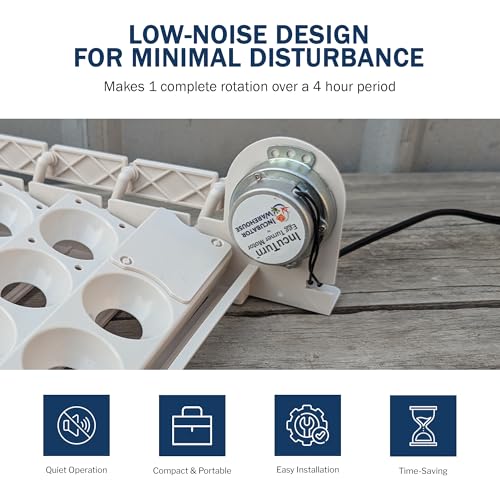 - 𝐐𝐔𝐈𝐄𝐓 𝐎𝐏𝐄𝐑𝐀𝐓𝐈𝐎𝐍: This incubator turning motor operates quietly with slow turning 1 rotation every 4 hours, minimizing disturbances in the environment. The quiet operation allows for a more peaceful incubation process where eggs will cross starting position every 2 hours.