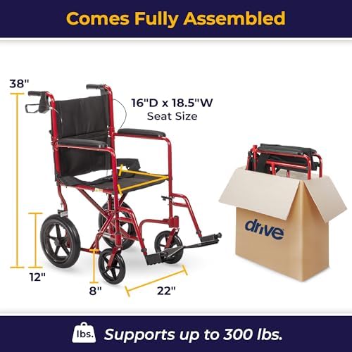 La silla de transporte liviana de Drive Medical pesa solo 19 libras, pero está diseñada por expertos para garantizar la seguridad y soportar hasta 300 libras. La silla de ruedas de transporte Expedition de aluminio, equipada con neumáticos traseros de 12 pulgadas que permiten recorrer tanto terrenos interiores como exteriores, es versátil y fiable. Se pliega como una silla plegable convencional y viene de serie con reposapiés plegables para mayor comodidad y comodidad. Los cierres de ruedas activados por un acompañante bajo las asas y el cinturón de seguridad garantizan la seguridad, mientras que una simple palanca en el respaldo de la silla permite transportarla y guardarla de forma rápida y plana. Una excelente opción para quienes buscan sillas de ruedas ligeras y portátiles para viajar o para el transporte diario. Con el respaldo de una garantía limitada de por vida de Drive Medical, una marca líder en dispositivos de movilidad y otros artículos médicos desde hace más de 20 años, puede comprar con confianza.