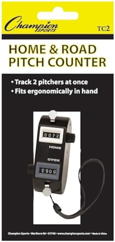 Keep track of every pitch with the Champion Sports Tally and Pitch Counter. This ergonomic Black device features two independent 4-digit displays, allowing you to effortlessly track the pitch count for both the home and away teams throughout the entire game. The comfortable design ensures it fits snugly in your hand for long innings, letting you focus on the game. With a maximum count of 9999 for each team, this Champion Sports Pitch Tally Counter is your reliable partner for accurate record-keeping, inning after inning.