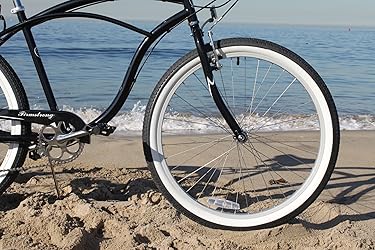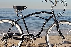 26-inch men's seven-gear cruiser bike for faster speeds and better hill climbing Classic curvy beach cruiser design with 17-inch durable steel frame and 26-inch aluminum wheels Front and rear handbrakes operated via handlebar; white-wall balloon tires for a cushioned ride Oversized seat with dual springs for added comfort; wide handlebars with foam grips Sized for men from 5 feet, 4 inches to 6 feet, 2 inches tall