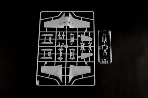 Korean War era carrier-capable Grumman jet fighter, 2nd production variant initially powered by the Allison J33 engine and later upgraded to J42 powerplants. Kit features engraved panel lines, detailed cockpit and wheel wells, optional position tail bumper, 2-piece canopy and external stores (6 each 5" HVAR rockets and 100 lb bombs and a pair of 500 lb bombs).