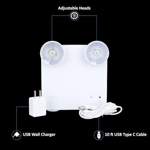 - Mountable and Portable: The integrated handle lets you carry these emergency lights and use it as powerful flashlights, and you can swivel the heads to shine light in different directions; the keyholes on the back allow you to mount the light onto walls