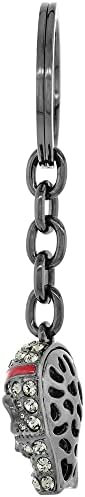 Sabrina Silver Pirate Skull Key Chain Key Ring Key Holder Key Tag Key Fob for Women Swarovski Elements Crystal Star Eye Patch Black finish 3 3/4 inch long