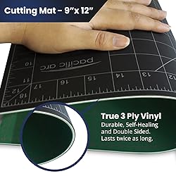 CRAFT WITH EASE - Bring your creations to life with Pacific Arc's high-quality cutting board mat. This craft mat is durable, self-healing, and double-sided. Create clean, precise cuts up to 1 foot long in length with the measurement markings on both sides. THICK AND DURABLE - This self-healing mat is made with 3 ply vinyl, and can, therefore, withstand any traditional mat cutter, fabric cutter, or rotary cutter blades. It is the perfect sewing cutting mat to protect your crafting station against a fabric cutter wheel. VERSATILE - Use these cutting mats for crafts of any kind. Use it as a fabric cutting mat to construct quilts and clothing or as a paper cutting mat for beautiful scrapbook designs. A MEMORABLE GIFT - For the creator in your life who is looking for a hobby mat or professional cutting mat. Add to a loved one's quilting supplies as a thoughtful, practical gift.