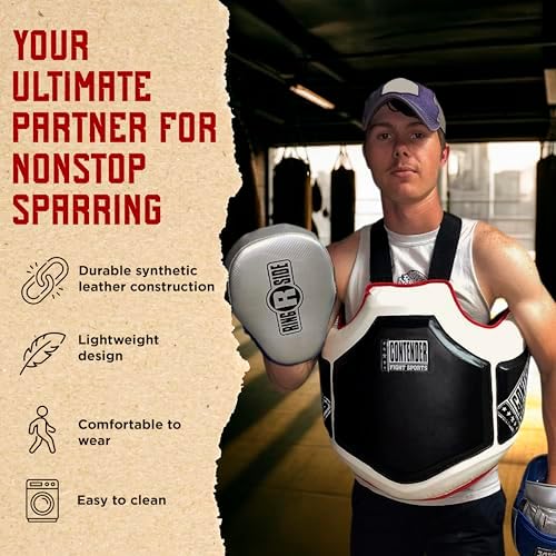 • El protector corporal de bateador pesado Contender Fight Sports permite al entrenador incorporar sin problemas los golpes corporales en las rutinas de guantes.