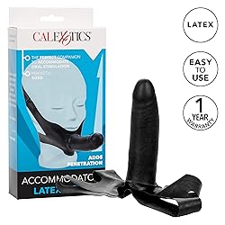 CalExotics Original Accommodator Latex Dong – Hands Free Strap On Probe for Couples – Adult Dildo Sex Toys - Black