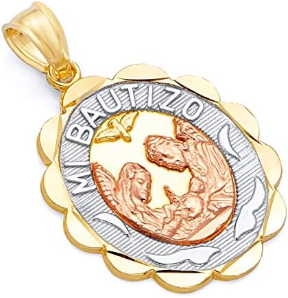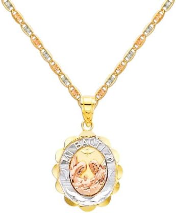 The World Jewelry Center 14k Tri-Color Gold Religious Baptism Pendant with 1.5mm Valentino Diamond Cut Chain Necklace