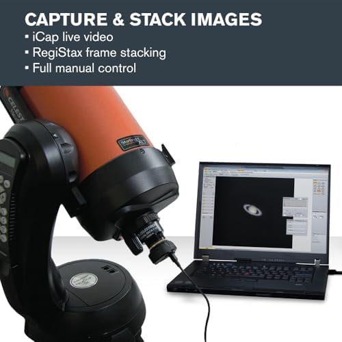 - INCLUYE SOFTWARE SOFISTICADO DE CONTROL DE CÁMARA Y APILAMIENTO: Vea y capture video en vivo en su computadora, apile los fotogramas más nítidos para obtener la mejor imagen y ajuste manualmente todos los ajustes de la imagen
