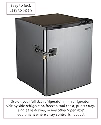 - Features: This fridge lock kit is great for protecting prescription medication or other sensitive items. Great refrigerator door lock for schools and hospitals, as well as home use. The plates may also be applied to any door or cabinet to restrict access and help comply with HIPPA and other privacy law requirements. Kit is conveniently packaged with a master lock brand padlock.