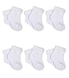 - Keep their little feet cozy warm with gerber terry soft socks made of 80 percent cotton, 17 percent nylon and 3 percent spandex for added comfort, designed to stay on babies feet with soft elastic, roll back cuffs, 6 pack assortment in solid white, machine wash and dry, available in sizes 0-3, 3-6 and 6-9 months, great item for gift giving
