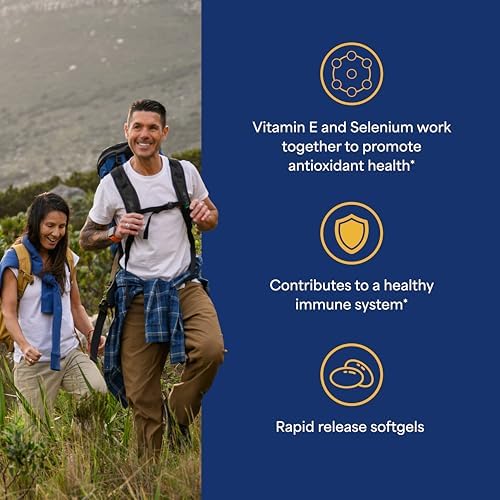 Puritan's Pride Vitamin E 184mg (400 UI) con Selenio 50mcg, Suplemento Vitaminico para el Sistema Inmunológico y Apoyo a la Salud Antioxidante, Suministro de 3 Meses, 100 Cápsulas Gelatinosas de Liberación Rápida
