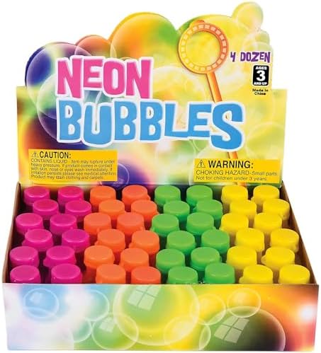 - Contains - 1.75 Inch Neon Bubble Bottles, Pack of 48, assortment of colors.
