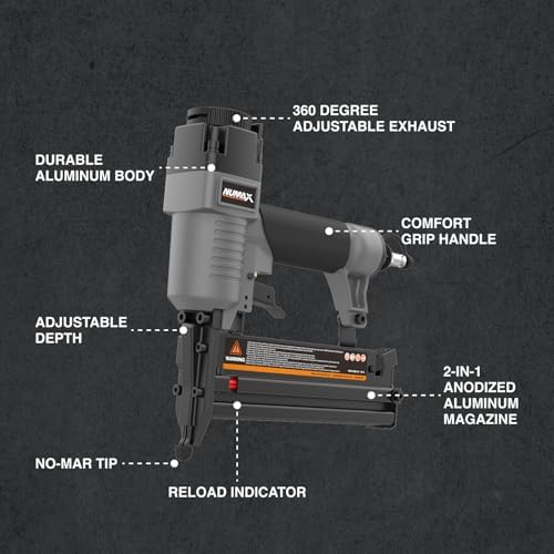 NuMax 2-in-1 18-Gauge Pneumatic Brad Nailer and Narrow Crown Stapler, Lightweight Finish Tool for Trim, Baseboards, Cabinet Backing, and DIY Projects, S2-118G2