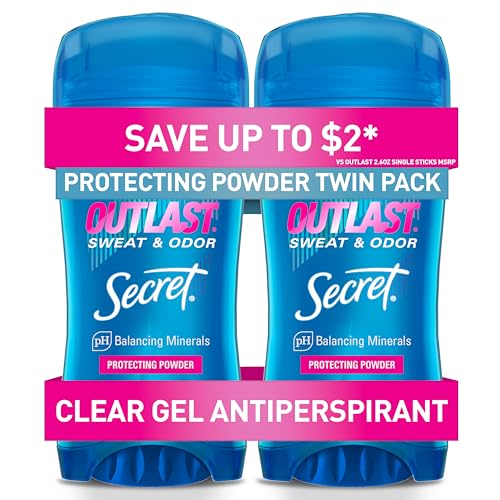 Secret Outlast Antiperspirant Deodorant for Women, 72hr Sweat & Odor Protection, PH Balancing Minerals, Clear Gel, Protecting Powder Scent, 2.6 oz (Pack of 2)