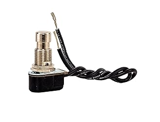Push button switch with push on-push off circuit function SPST Poles and throws Brass/Nickel pushbutton actuator 6/3 amps at 125/250 VAC Voltage Rating Wire Lead Connector