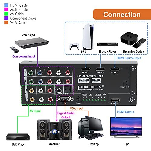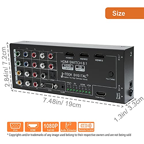 J-Tech Digital JTD-0801 Multi-Functional HDMI Converter Switch with 8 Inputs to 1 HDMI Output