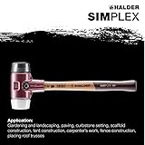 - Offering an insert combination of composite rubber / superplastic, the SIMPLEX series 3027 is an indispensable companion for a large number of applications and Halder's top-selling combination. Ultra low-wear, impact cushioning, and odorless, the medium-hard rubber insert (series 3202) offers a much longer service life than a conventional rubber hammer. The superplastic insert (series 3207) allows for a more powerful impact force than the rubber insert. It is a medium-hard plastic insert made of extruded and extremely homogeneous material. Compared to injection molded plastic inserts, it is therefore considerably more wear-resistant and durable. Made of cast iron, the housing comes with an integrated handle protection sleeve that provides for a high level of break resistance. Damping vibrations and shaped ergonomically, the high-quality wooden handle has a double coat of varnish in the grip area and is thus resistant to dirt. In line with the smart SIMPLEX principle, all components are replaceable and can be retrofitted. This translates to savings in both money and resources.