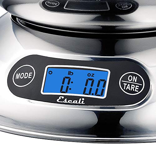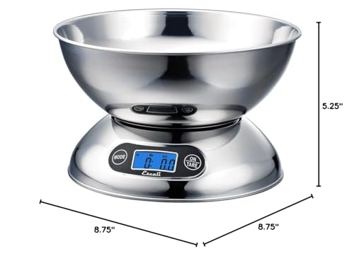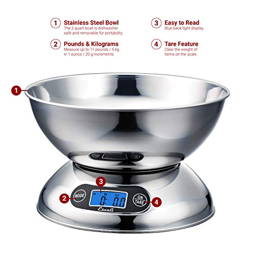 Escali Rondo Contemporary Kitchen Bowl Scale 2-Quart, Dishwasher Safe Bowl, Measures Liquids and Dray Ingredients, LCD Digital Display, 11lb Capacity, Stainless Steel