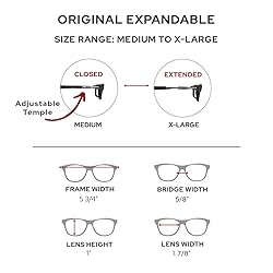 SIZE RANGE: MEDIUM to X-LARGE. All CliC glasses have adjustable temples that can be fully closed or extended to fit a range of sizes. Your size is determined by measuring the full circumference of your head to account for both the frame and permanent rigid headband...see our size chart for more details. STOP LOSING YOUR READERS. With CliC's exclusive front magnet connection and permanent rigid headband, taking them on and off is quick and easy. Adjust the temples for a perfect fit while wearing your glasses or have them comfortably lay around your neck when not in use. Never lose your glasses again with this built in convenience. A SIZING SOLUTION. The adjustable temple feature found on all CliC frames allow for easy sizing in the moment. Simply pull to adjust the length of your glasses for a perfect fit every time you put them on. The Original Expandable provide an additional 1/2" in length and a 35° stem for a bit wider feel. Also features a width adjustment on the back of the headband providing a comfortable fit that accommodates almost every head shape and size. READER QUALITY YOU CAN RELY ON. Your CliC glasses are manufactured with high-impact acrylic lenses, strong neodymium magnets, and a durable TR90 wrap-around rigid headband strap. Along with our unique 180 degree hinges that allow each lens to fold upward towards the frame or straight down around the neck. CliC glasses are built with the expectation that you'll be wearing them for years to come. THE ORIGINAL EXPANDABLE FRAME. The Original Expandable readers have the same rectangular design as the Original style, but expand in both width and length. The convenient rigid wrap-around headband is perfect for hanging around your neck and the adjustable temples provide a MEDIUM to X-LARGE size range.