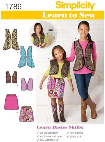 Simplicity Sewing Pattern 1786: Learn to Sew Child's & Girls' Sportswear, size K5 (7-8-10-12-14). Child's & girls' vests in two styles with trim variations and skirt. Learn to Sew Pattern Collection by Simplicity.