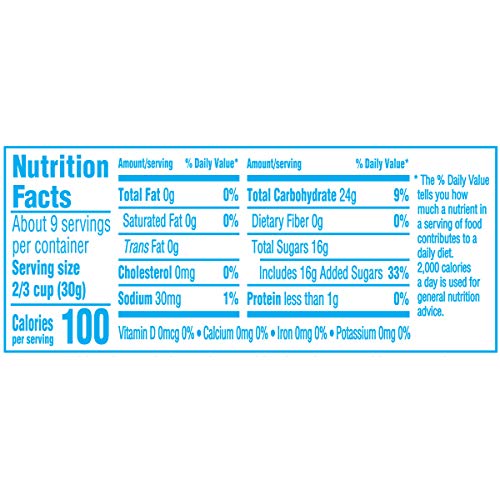- Has 0 grams of trans fat and 0 grams of total fat per serving