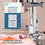 SEWING MADE SIMPLE: SCHMETZ Universal Needles work with all home sewing machines and handle everything from delicate silks to heavy denim, making them perfect for any quilting, embroidery, craft, or home décor project CONVENIENT 1-NEEDLE SOLUTION: These all-purpose 110/18-sized needles handle a wide variety of materials, saving you time and effort in your sewing routine VERSATILITY & VALUE: This needle set delivers reliable performance across many fabrics, offering great value for your sewing kit READY FOR EVERY CHALLENGE: These needles are built for the long haul, tackling even the toughest sewing projects with ease, and delivering professional-quality results on woven and knit fabric SNAG & DAMAGE-RESISTANT: With a slightly rounded point, these needles glide through woven and knit fabrics without snagging, making them perfect for both beginners and complex projects