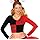 - Long-sleeve red and black patterned design cut at midriff length; black glitter accents