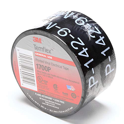 3M Temflex Mining-Grade Vinyl Electrical Tape 1700P, 1-1/2 in x 44 ft,Printed, Black, 1 roll/carton