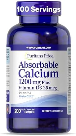 • APOYANDO LA FORTALEZA Y SALUD ÓSEA: El Calcio Absorbible Puritan's Pride con Vitamina D3 en 200 unidades ofrece 1200 mg de Calcio absorbible por porción para ayudar a mantener huesos fuertes y una salud esquelética general*