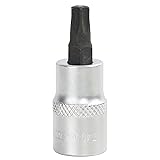 PROFESSIONAL-QUALITY TOOLS: Sockets can get dirty and damaged from continued use; Our T40 socket features a smooth chrome finish which makes this star bit socket easy to clean and resistant to rust; The T 40 bit also won’t show fingerprints MULTIPLE APPLICATIONS: Our torque sockets can be used in automobiles, motorcycles, bike brake systems, hard disk drives, consumer electronics, and general construction; They are great additions to any star socket bit set because of their versatility CHAMFERED ENDS: It is easy to complete tasks with our torque sockets; The chamfered ends allow fast and smooth fastener engagement; Because they provide a precise fit, the star driver bits reduce wear and tear on bits and fasteners BEST GRIP: Each torque star socket has a knurled position design around the outside which provides a no-slip grip; With this T40 bit, you never have to worry that your fingers will slip, which is especially useful for when your fingertips are greasy EASY IDENTIFICATION: It can be hard to find the right mechanic socket when your toolbox becomes jumbled; Each of these OEMTOOLS sockets feature deep high-visibility markings that make size identification easy, so you can always find this 3/8 socket