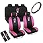 - UNIVERSAL FIT - Crafted with adjustable straps and stretchable materials, they easily conform to most seat shapes and sizes, delivering a snug fit to most vehicles. Steering wheel cover fits all standard steering wheel sizes (14.5" - 15.5").