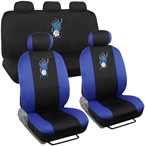 BDK SC-452-BL SC452BL 9 Piece Set Hibiscus Flower Print Design Seat Covers-Fit for Car SUV Van and Truck, Blue Hawaiian