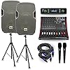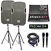 - 🎤 All-in-One Pro Audio Kit – Built for Events This portable PA system with wireless mic includes a 6-channel mixer with built-in amplifier, two 10" 2-way DJ speakers (bluetooth, wireless, and big), dual wireless handheld microphones, speaker stands, and all required cables. Ideal for karaoke, live performances, DJ gigs, and outdoor movie projector with speakers setups.