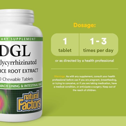 Natural Factors, DGL masticable 400 mg, extracto de regaliz para una digestión saludable, 180 unidades (paquete de 1)