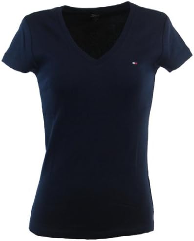 Tommy Hilfiger Womens V-Neck Solid Color Logo T-Shirt - M - Navy