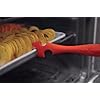 Stay cool handle. Use side notches to pull oven rack or edge of pans towards you. Use the notch on the end to push oven rack or pan back into oven. High heat resistant to 645°F/340°C. 9-inch/23cm.