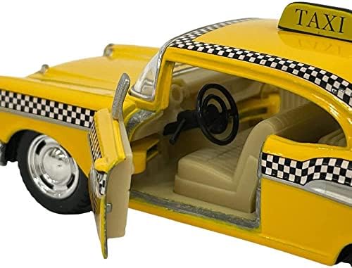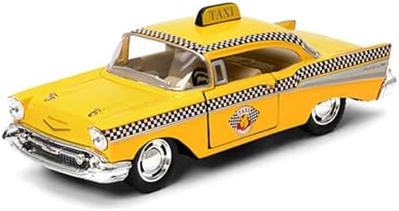 - 🚖 Iconic Design: 1:40 scale die-cast metal model of the classic 1957 Chevy Bel Air Coupe taxi cab.
