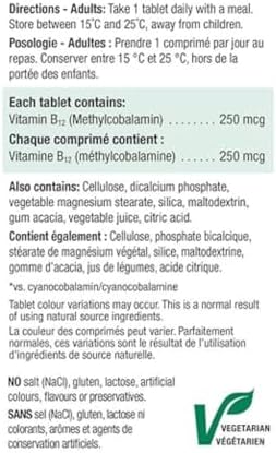 Jamieson Vitamin B12 (Methcycobalamin)250mcg, 100 Tablets