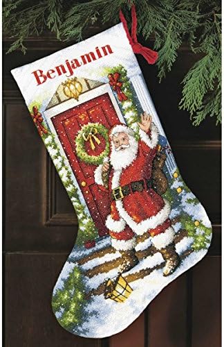 This year, hang a homemade Christmas stocking above the fireplace! The Dimensions Gold Collection Counted ross Stitch Personalized Christmas Stocking Kit features a happy Santa Claus waving as he begins his journey! Personalize this Christmas craft by stitching the name of a child, friend, or loved one above the sweet winter scene. Christmas cross stitch stocking kit includes 18 count white Aida, cotton and metallic threads, felt, needle, and easy instructions. Completed stocking measures 16'' long.