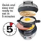 Hamilton Beach Breakfast Sandwich Maker with Egg Cooker Ring, Customize Ingredients, Perfect for English Muffins, Croissants, Mini Waffles, Perfect White Elephant Gifts, Silver (25475)