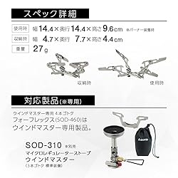 - 4 large cockets that can be used with 6.7 inches (17 cm). Ideal for use in groups and for use with a focus on cooking. The burner body can be stored compactly. For use with Micro Regular Stove Windmaster SOD-310.