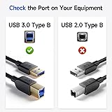 Versatile Device Connectivity: This high-performance USB A to USB B cable easily connects desktop external hard drives, powered USB hubs, USB docking stations, 3.5-inch hard drive enclosures, scanners, and monitors with a Type-B USB 3.0 port to your computer for fast and efficient file transfer. Note: This is a USB-A to USB-B 3.0 cable and will NOT work with USB 2.0 Type-B ports. Faster Data Transfer Speeds: Enjoy SuperSpeed USB 3.0 data transfer rates of up to 5 Gbps, 10 times faster than USB 2.0, ensuring quick and reliable performance with this USB 3 cable. Enhanced Durability and Easy Use: This USB B to USB A cable is engineered with molded strain relief connectors for extra durability, while the grip treads make it easy to securely plug and unplug without hassle. Superior Performance and Reliability: Featuring gold-plated connectors, bare copper conductors, and foil & braid shielding, this USB Type B 3.0 cable ensures optimal performance, error-free data transmission, and fast charging speeds. Broad Compatibility with Popular Devices: The USB 3.0 Type B cable is compatible with Fujitsu ScanSnap iX500 scanner, Dell S2340T monitor, Dell USB 3.0 docking station, HP USB 3.0 port replicator, and Western Digital (WD) and Seagate desktop USB 3.0 external hard drives equipped with a Type-B USB 3.0 port.