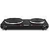 Elite Gourmet EDB-302BF Horno de Countertop de Hierro Fundido Doble, Placa Caliente Eléctrica de 1500 Watts, Controles de Temperatura, Luces Indicadoras de Energía, Fácil de Limpiar, Negro