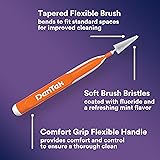 DenTek Easy Brush Advanced Clean Interdental Cleaners with standard fit brushes in between teeth, interdental spaces or dental appliances Tapered brush with soft bristles helps remove food from hardest-to-reach places The flexible wire allows bristles to bend for better access to clean around braces and other dental work Nonslip flexible handle provides comfort and control to ensure a thorough clean Interdental brush has advanced fluoride coating and Mouthwash Blast Mint flavor Contains 6 packs of DenTek Easy Brush Advanced Clean Interdental Cleaners, Standard, 16 count